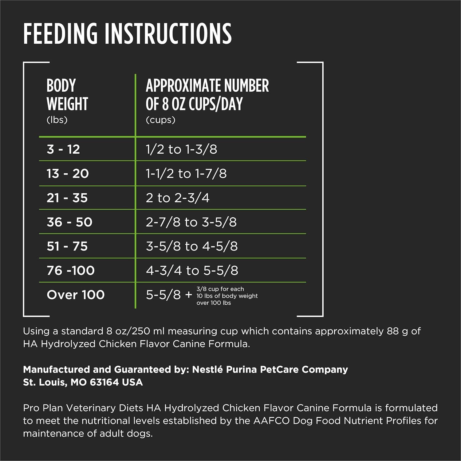 Talk to your veterinarian to see if Purina Pro Plan Veterinary Diets HA Hydrolyzed Chicken Flavor Dry Hydrolyzed Dog Food could benefit your dog. This chicken flavor dog food contains a single carbohydrate source, plus a single hydrolyzed protein source, which is protein that has been broken down into small components to be less likely to cause an adverse food reaction in certain dogs. Each serving of this great-tasting, easily digestible dog kibble is made with high-quality ingredients, including coconut oil, a source of medium-chain triglycerides (MCTs), and high-quality protein and antioxidants. The science behind Purina Pro Plan Veterinary Diets represents a collaboration between Purina nutritionists, researchers, and veterinarians. Support your dog’s digestive health with Purina Pro Plan Veterinary Diets HA Hydrolyzed Chicken Flavor Formula Dry Hydrolyzed Dog Food at mealtime.