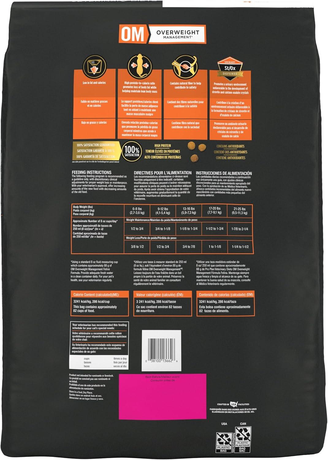 Pro Plan Veterinary Diets Purina OM Overweight Management Feline Formula Dry Cat Food - 16 lb. Bag(16 Pound (Pack of 1))