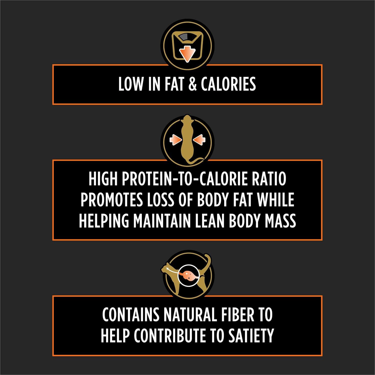 Help your cat stay svelte by introducing her to a great-tasting, low calorie cat food like Purina Pro Plan Veterinary Diets OM Overweight Management Savory Selects With Chicken Feline Formula Wet Cat Food. This weight loss cat food is specially formulated with a high protein-to-calorie ratio to promote the loss of body fat while helping maintain lean body mass. Including natural fiber to help contribute to satiety, this low calorie cat food features a great chicken taste and contains antioxidants. This Purina Pro Plan Veterinary Diets wet cat food is an excellent choice for weight loss or weight maintenance. The science behind Purina Pro Plan therapeutic diets represents a collaboration between Purina nutritionists, researchers and veterinarians. If your cat is obese or overweight, help her slim down to a healthy weight by serving her Purina Pro Plan Veterinary Diets OM Overweight Management Savory Selects With Chicken Feline Formula Wet Cat Food.