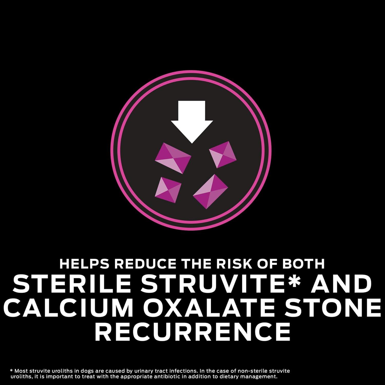 Talk to your veterinarian to see if Purina Pro Plan Veterinary Diets UR Urinary Ox/St Canine Formula Dry Dog Food could benefit your dog. This great-tasting adult dog food is made with high-quality ingredients and is formulated to promote a urinary environment unfavorable to the development of both sterile struvite* and calcium oxalate crystals while also helping reduce the risk of recurrence of these stones. This dog kibble also helps dissolve sterile struvite stones*. Also included are antioxidants and high-quality protein for dogs. The science behind this therapeutic diet represents a collaboration between Purina nutritionists, researchers and veterinarians. * Most struvite stones in dogs are caused by urinary tract infections. In the case of non-sterile struvite stones, it is important to discuss antibiotic therapy with your veterinarian in addition to dietary management.