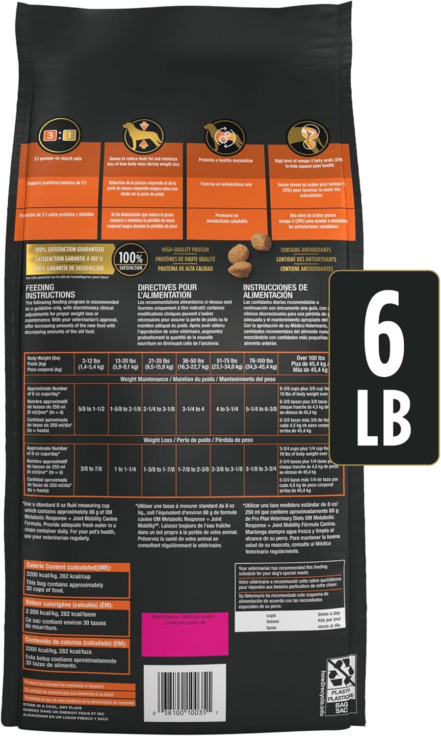 Help your overweight dog drop those extra pounds while offering him nutrition for joint health with Purina Pro Plan Veterinary Diets OM Metabolic Response Plus Joint Mobility dog kibble. This weight management dry dog food contains an innovative nutritional blend that includes a high level of long-chain omega-3 fatty acids to offer your dog joint health support and glucosamine for cartilage health. Each serving of this Purina Pro Plan weight management dog food features high protein to promote the loss of body fat while helping maintain lean muscle mass. This formula also includes antioxidant vitamins A and E to support a healthy immune system. The science behind our therapeutic diets represents a collaboration between Purina nutritionists, researchers and veterinarians. Start your dog on Purina Pro Plan Veterinary Diets OM Metabolic Response Plus Joint Mobility dog kibble and help them reach their ideal body weight.