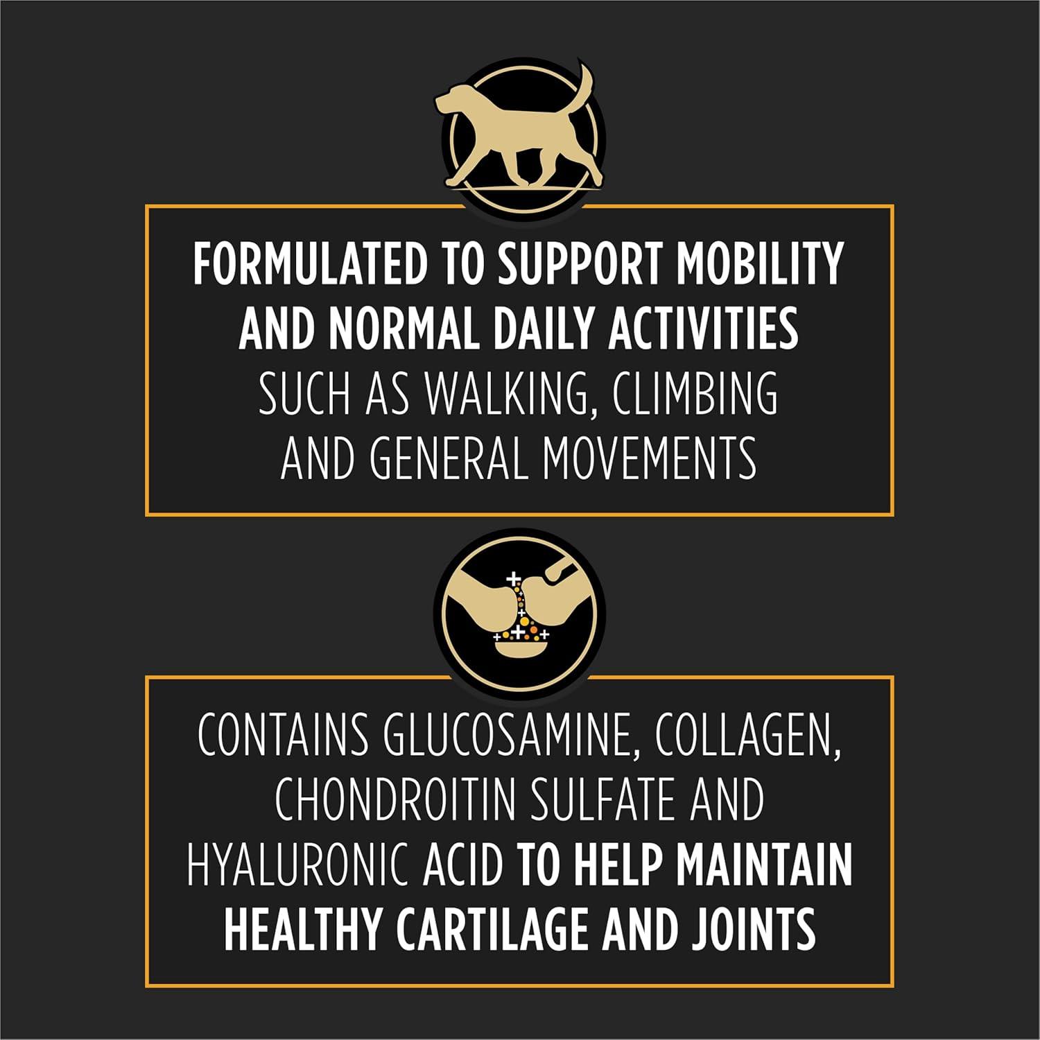Little dogs live active lifestyles, which can cause wear and tear on their joints, so give them Purina Pro Plan Veterinary Supplements Joint Care Mobility Canine Joint Supplement for Small Dogs. These small dog joint supplement chews are formulated to support mobility and normal daily activities such as walking, climbing and general movements. Each small dog hip and joint supplement chew helps to maintain healthy cartilage and joints with a powerful blend of glucosamine for dogs, collagen, chondroitin sulfate and hyaluronic acid. Also included are omega 3 fatty acids for dogs from cod liver oil to promote a normal inflammatory response in joints from natural aging and a healthy skin for dogs. Whether you’re looking for senior dog supplements for hip and joint care, for large breeds, or for small breeds, talk to your veterinarian about Purina Pro Plan Veterinary Supplements Joint Care.
